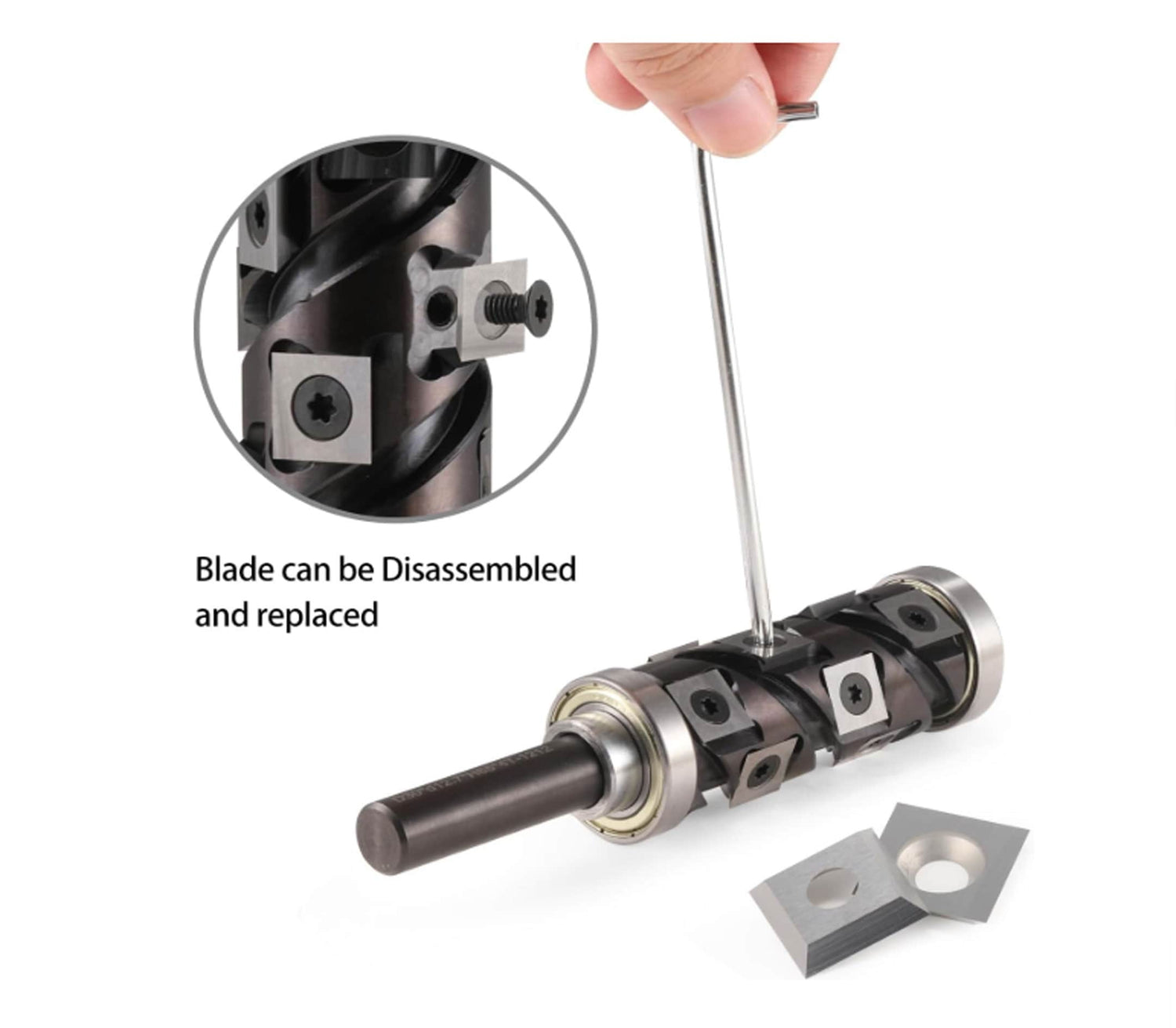 - Indexable insert knives are all manufactured in industrial standard, allowing for smaller chips, extreme durability,lower noise level, tear-free working result, and reduced power consumption.