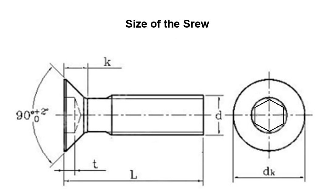 - DIN 7991 standard size of Metric Countersunk Hexagon Socket Screws: M2.5, M3, M3.5, M4, M5 and M6